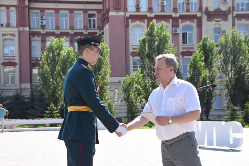 Свидетельства и нагрудные знаки студентам, окончившим Военный учебный центр вручили: ректор РГУПС, д.т.н., профессор В.Д. Верескун и почетные гости: начальник Управления Железнодорожных войск Южного военного округа, генерал-майор Ю.М. Хорт, инспектор, группы инспекторов ЮВО генерал-майор В.Н. Лебедев, инспектор, группы инспекторов ЮВО генерал-майор Н.И. Посредников, военный комиссар Ростовской области И.А. Егоров.