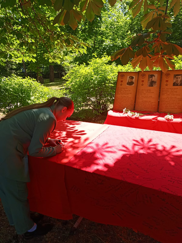 На территории парковой зоны, у обелиска «Сотрудникам и студентам РИИЖТа, погибшим на фронтах Великой Отечественной войны», студентами-активистами проведена литературно-творческая композиция «Дайте вашим детям наши имена», в ходе которой собравшиеся почтили память защитников нашей Родины, погибших в годы Великой Отечественной войне 1941-1945 гг. и выпускников РГУПС, погибших в зоне проведения специальной военной операции. Завершилось мероприятие минутой молчания и возложением цветов к памятникам, расположенным на территории университета. Самыми юными участниками композиции стали воспитанники детского сада.