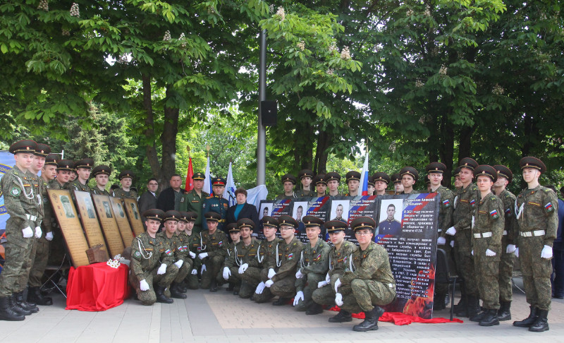 В ходе Областного межвузовского военно-патриотического праздника «Поклонимся великим тем годам...», посвященном 79-й годовщине Великой Победы над фашистской Германией, студенты военного учебного центра приняли участие в параде студентов-курсантов военных учебных центров образовательных организаций высшего образования Ростовской области, активисты бытового совета общежития № 3 при участии управления молодёжной политики и воспитательной деятельности и руководства студенческого городка представили выставку о связи поколений защитников нашей Родины «Они нам подарили свои жизни».
