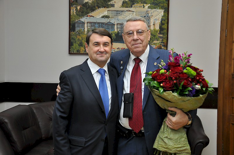 От всей души желаем Вам дальнейших побед, смелых планов и начинаний в научной области, новых конструктивных идей и мудрых решений. Пусть Ваш богатый жизненный опыт, организаторский талант, взвешенность принимаемых решений послужат дальнейшему процветанию родного вуза и Донского края.