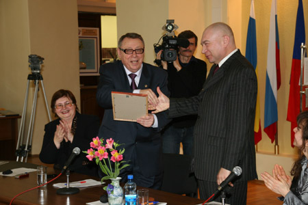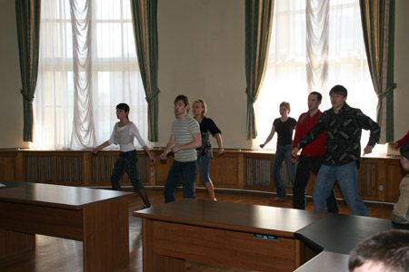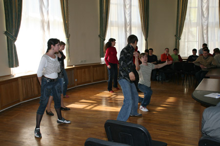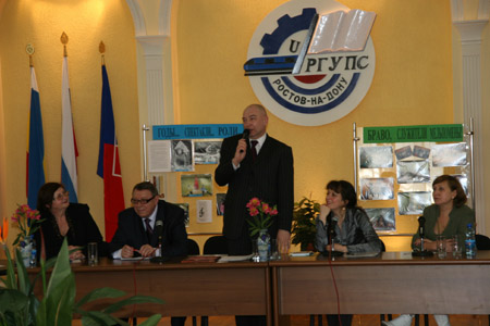 9 апреля 2008 года вновь распахнула свои двери традиционная литературная гостиная «Ростов и ростовцы». Созданная по инициативе ректора РГУПС, академика РАН Владимира Ивановича Колесникова, гостиная приглашает самых интересных, талантливых ростовчан. Тема очередной встречи: «Театр! Вчера, сегодня, завтра», посвященная международному Дню театра. Почетным гостем встречи стал ростовский режиссер-педагог, актер, заслуженный деятель Всероссийского музыкального общества Алексей Владимирович Климашевский. Студенты всех факультетов, лицеисты, сотрудники, участники студенческого театра-студии «Орфей» получили возможность прикоснуться к удивительному и прекрасному миру искусства. В своем выступлении В.И. Колесников рассказал о своей давней любви к театру, о своей студенческой поре и желании стать режиссером. Участники встречи совершили экскурс в историю и узнали о театральной жизни старого Ростова. Затем началось живое общение и читальный зал библиотеки превратился в театральные подмостки. Режиссер- постановщик А.В. Климашевский перевел действие в комедийную плоскость, зажег публику, студенты с удовольствием участвовали в импровизациях, соревнуясь в актерском мастерстве. Девчонки и мальчишки вдохновенно изображали закипающий чайник и ломающийся пылесос, походку дюймовочки и сытого воробья. Зал взрывался от аплодисментов и смеха. Подарком для всех стало выступление студенческого театра-студии «Орфей», который показал сцену из мюзикла «Здравствуйте, я Ваша тетя!». Встреча получилась яркой, веселой, динамичной, надолго подарив радость и хорошее настроение. Студенты и лицеисты выразили благодарность вдохновителям и организаторам литературной гостиной- сотрудникам научно-технической библиотеки и управления воспитательной работы РГУПС.