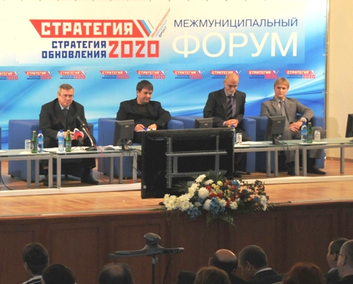 На базе Ростовского государственного университета путей сообщения Губернатор Ростовской области В. Ю. Голубев провел заключительный, пятый, межмуниципальный проектный форум «Стратегия 2020 – стратегия обновления». Вниманию участников форума и экспертов были представлены презентации лучших проектов по пяти губернаторским «И» - инновации, инвестиции, инфраструктура, институты и инициатива: «Центр спортивной подготовки по плаванию» в Ворошиловском районе города Ростова-на-Дону, «Медиапарк Южный регион», «Реконструкция и продление набережной реки Дон», «Ремонт дворов руками молодежи», «Экологический межрегиональный ежегодный форум «Зеленый остров». Лучшие проекты «Стратегии 2020» будут представлены на конференции в рамках 11-го Международного бизнес-форума на Дону.