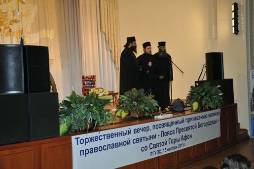 15 ноября в 15-30 в Ростовском государственном университете путей сообщения прошел праздник «Россия – дом Пресвятой Богородицы», приуроченный к принесению Великой Православной святыни – Пояса Пресвятой Богородицы – со святой горы Афон в г Ростове-на-Дону