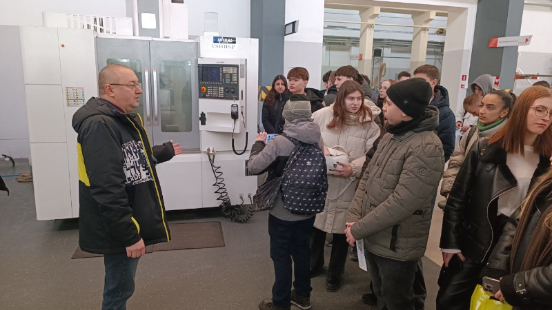 Завершающим этапом экскурсии по университету стал Учебно-производственный комплекс профессиональной подготовки, где школьники познакомились с новейшим учебно-производственным оборудованием, современным станочным парком, необходимым при прохождении студентами техникума учебной практики по специальностям, реализуемым в рамках федерального проекта «Профессиоанилет».