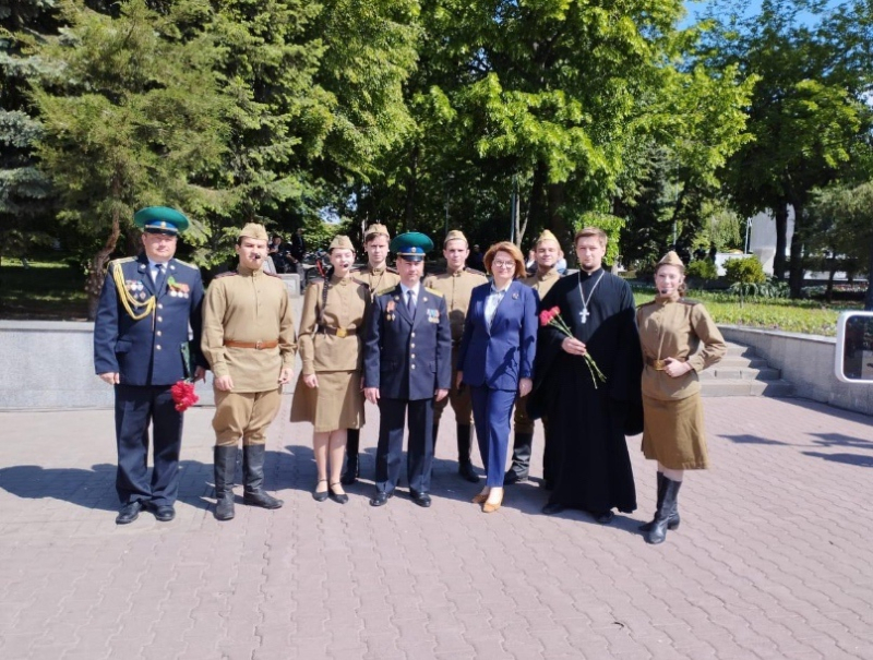 На площади Карла Маркса у мемориала "Павшим воинам" представители общественных организаций и городской администрации возложили цветы, а в исполнении ребят из «Успеха» прозвучала композиция "Поклонимся великим тем годам".
