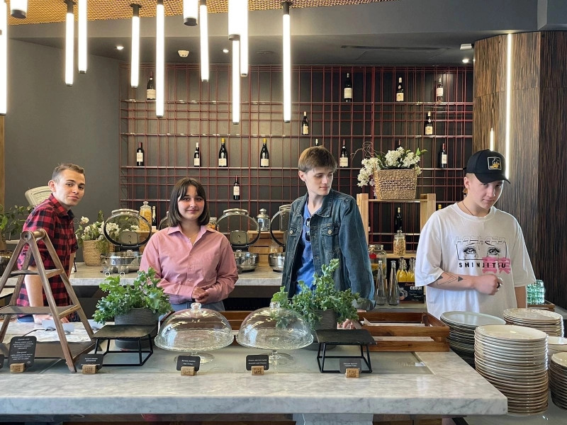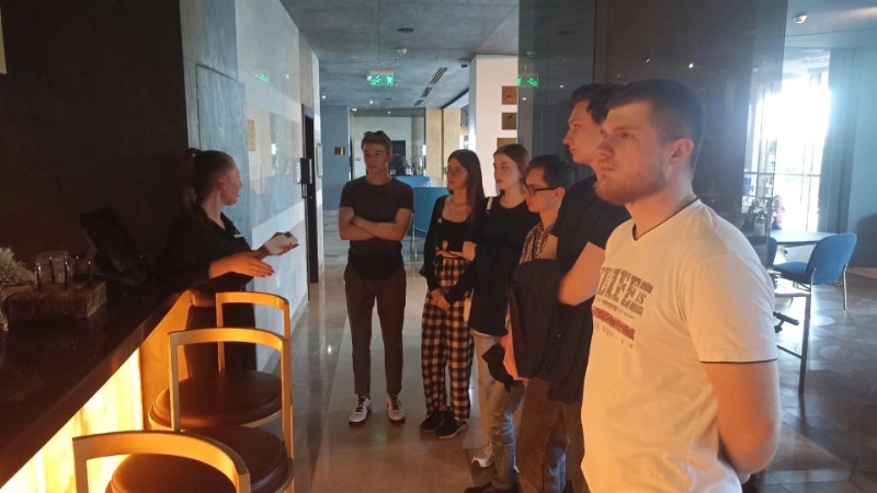 Ребята посетили ресторан “Radisson Blu”, где им провели экскурсию по нескольким залам заведения, рассказали о системе обслуживания гостей как в зоне бара, так и в зоне ресторана, номеров и конференц-зала. Студенты изучили систему работы шведской линии, сервировку, правила проведения банкетов, кухню и из каких аспектов складывается меню в этом ресторане.