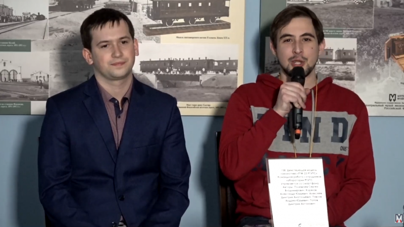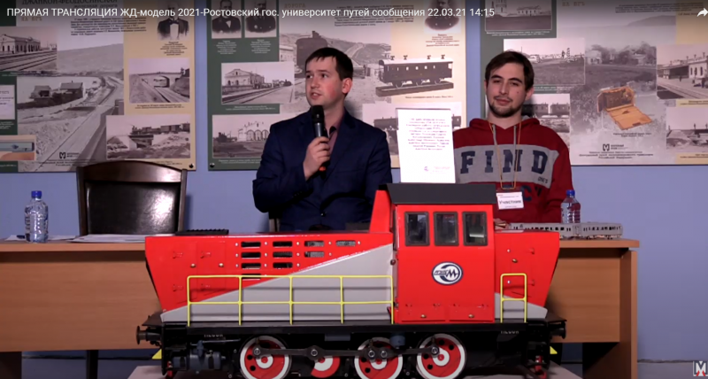 Также представители делегации провели для участников и зрителей две презентации: инженер лаборатории по электронике Александр Коряхов представил отчёт о создании модели тепловоза ТГМ23Р, работа над которой длилась три года и стала дипломным проектом для самого Александра. А студент 4-го курса электромеханического факультета – Дмитрий Попов поделился опытом о внедрении аддитивных технологий лабораторией твердотельного моделирования РГУПС. «Аддитивные технологии позволяют с помощью 3D-принтера упростить в разы создание готовой модели, повысить детализацию и точность, а также снизить порог вхождения в моделизм для начинающих» - рассказал Дмитрий и представил модель дизельного поезда МДП4 в масштабе 1:87, полностью созданную с помощью технологии 3D-печати. Студенты и преподаватели электромеханического факультета поддерживали нашу делегацию в прямом эфире через zoom-конференцию.