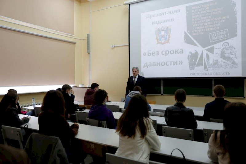 В ходе Всероссийской акции «Без срока давности» проведены тематические беседы, лекции; перед студентами выступили деканы факультетов: гуманитарного - кандидат технических наук, доцент Осипов В.А. и энергетического - доктор технических наук, профессор Финоченко В.А., преподаватели вуза; студентами написаны письма в будущее «Нельзя забыть»; организованы просмотры с последующим обсуждением фильма «Без срока давности», посвященного памяти жертв геноцида советского народа от немецко-фашистских захватчиков в годы Великой Отечественной войны 1941-1945 гг. Студентам и обучающимся лицея сотрудники ГКУ РО «Центр документации новейшей истории Ростовской области» представили 23-х томный федеральный издательский проект «Без срока давности: Преступления нацистов и их пособников против мирного населения на оккупированной территории РСФСР в годы Великой Отечественной войны» и фотодокументальную виртуальную выставку в рамках федерального проекта «Без срока давности». В мероприятиях приняли участие студенты всех факультетов, филиалов, техникума РГУПС и обучающиеся лицея РГУПС.