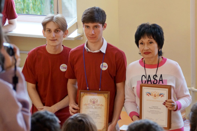 По итогам конкурса директорам и учителям были вручены благодарственные письма, командам – дипломы участников, сладкие угощения, а команде победителю – МАОУ города Ростова-на-Дону школа № 30 имени Героя Советского Союза Кравцова О. Т. – КУБОК.