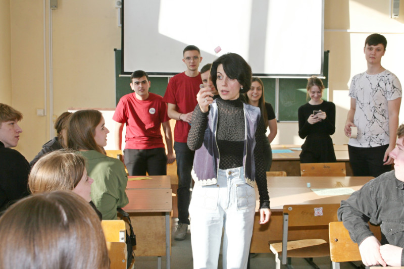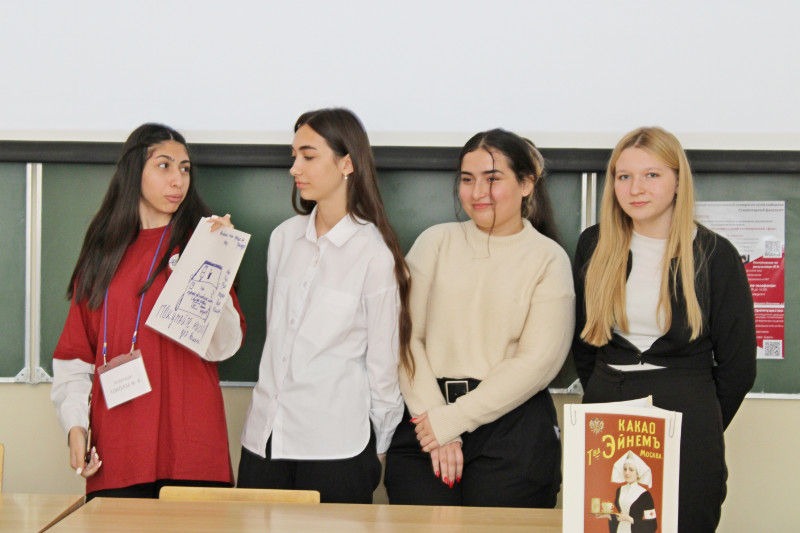 Школьников поделили на 4 команд, за каждой из которых был закреплен наставник из числа студентов гуманитарного факультета.