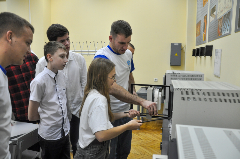 Одним из ключевых моментов Дня открытых дверей стали уникальные мастер-классы, которые позволили школьникам окунуться в образовательную среду факультета. В лабораториях Электромеханического факультета участники мастер-классов получили возможность ознакомиться со скоростным и высокоскоростным тяговым подвижным составом, попробовать себя в ролях дежурного по станции, машиниста и помощника машиниста в процессе проведения деловой игры. На кафедре «Вагоны и вагонное хозяйство» школьники смогли поработать на тренажере «Проводника пассажирского вагона», а также побывать в роли осмотрщика вагонов. По уже сложившейся традиции, участникам мастер-классов была предоставлена возможность самостоятельно приготовить мороженое с использованием криогенных технологий, что вызвало большой интерес у школьников. В лаборатории «Термической обработки» студенты продемонстрировали «как закалялась сталь». В «Большой гидравлической и экологической лаборатории» школьники узнали об уровне рН в различных средах, а также научились оказывать первую доврачебную помощь.