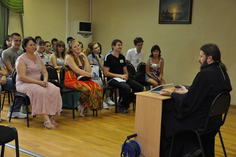 Иерей Михаил Гапоненко, руководитель Отдела по делам молодежи и миссионерскому служению Ростовской-на-Дону епархии, настоятель Татиановского храма при ДГТУ провел с участниками лагеря беседу на тему «Преображение Господне: Может ли современный человек стать святым?». Откровенный разговор, возможность высказать свое мнение, выслушать наставления сделали эту беседу интересной и запоминающейся для ее участников.