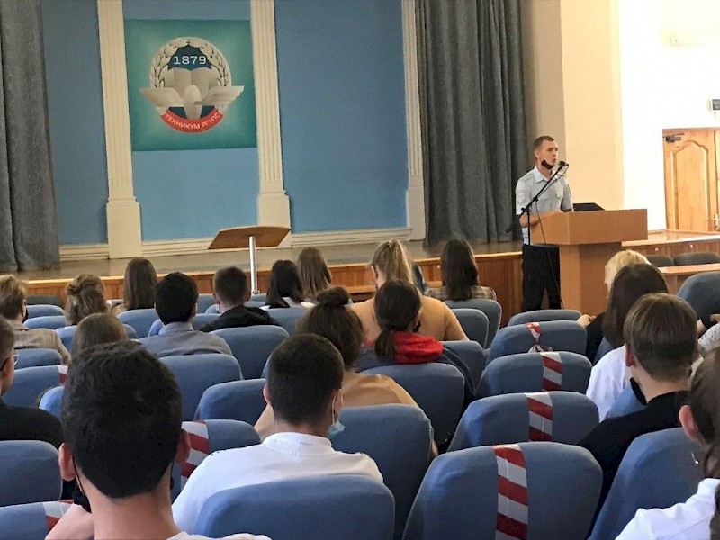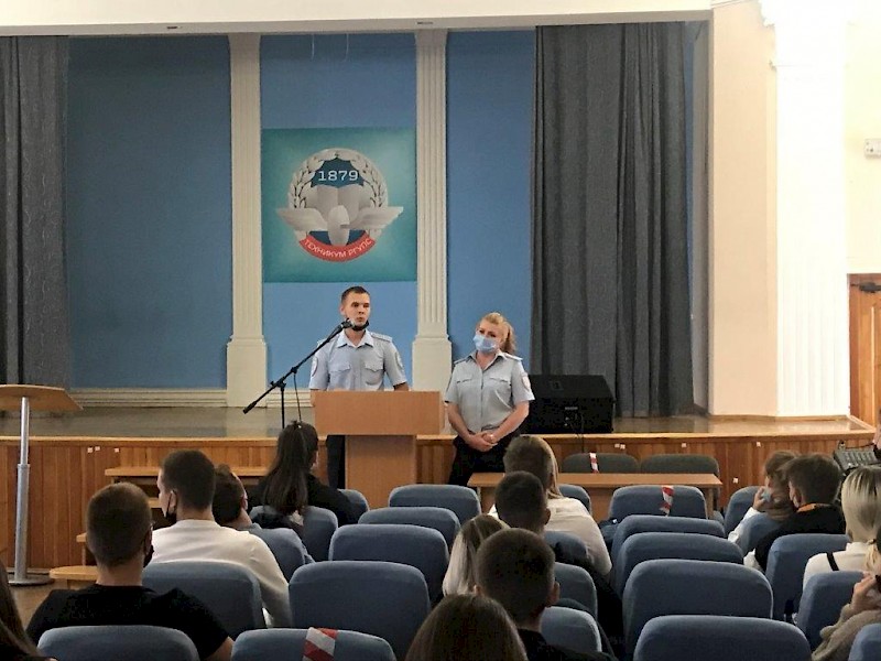 В техникуме РГУПС в ходе реализации социально-гуманитарного проекта «Дни правового просвещения в Ростовской области» проведён цикл информационно - просветительских встреч студентов с инспекторами (ПДН) ОПДН Ростовского ЛУ МВД России на транспорте майором полиции Н.В. Степной и старшим лейтенантом полиции Е.И. Щекиным ,по темам: «Профилактика террористических и экстремистских проявлений в молодежной среде», «Административная и уголовная ответственность несовершеннолетних граждан», «Кибербезопасность», «Несанкционированные митинги – понятия и ответственность», «Правила поведения на железной дороге».
