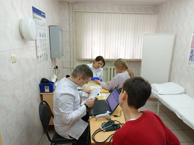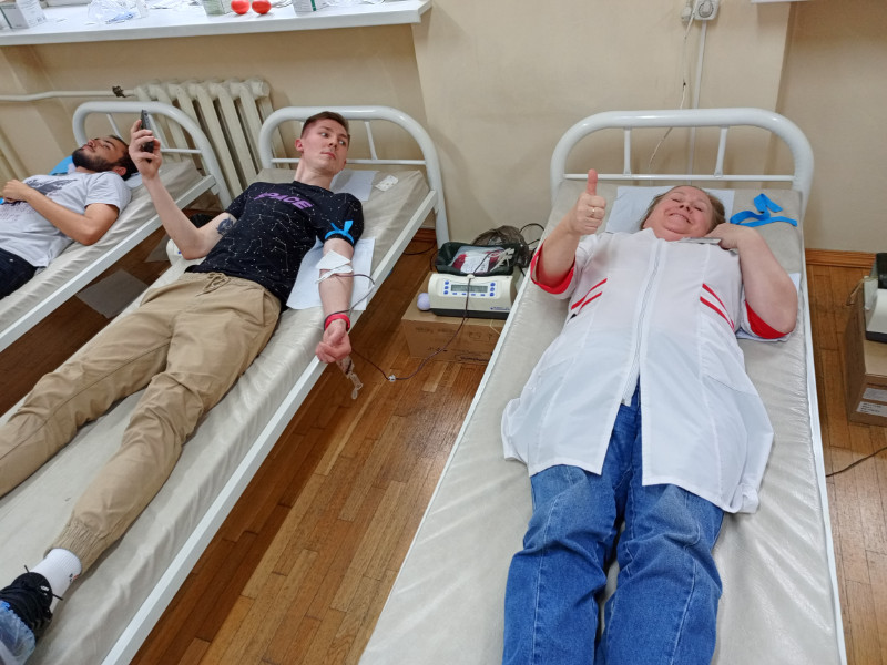 Перед донацией более 80 студентов, преподавателей, офицеров военного учебного центра, сотрудников поликлиники прошли необходимый предварительный осмотр и заполнили специальную анкету о самочувствии и состоянии здоровья.