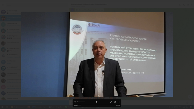 Также перед школьниками и их родителями на собрании выступал Бочков Валерий Владимирович, начальник службы управления персоналом Северо-Кавказской железной дороги – филиала открытого акционерного общества «Российские железные дороги», а директор техникума РГУПС Андрей Владимирович Мазуренко поприветствовал будущих студентов и отметил, что техникум с нетерпеньем ждет, когда первые студенты Профессионалитета сядут за парты нового высокотехнологичного центра, который будет создан на базе РГУПС.