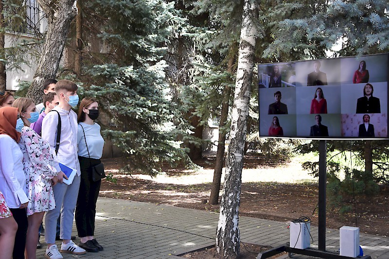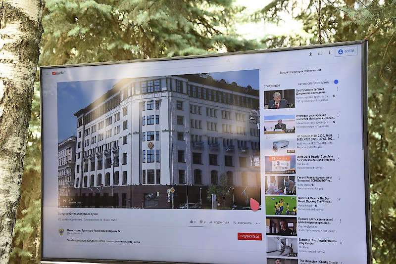 В начале мероприятия хоры 17 транспортных вузов исполнили Гимн России. С приветственным словом к выпускникам 2020 года обратился Министр транспорта Российской Федерации Евгений Дитрих и руководители транспортного комплекса России.