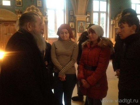 Во время экскурсии ребята ознакомились с историей храма, о которой им поведал настоятель, отец Владимир (Михайлов). Студенты с интересом выслушали рассказ о восстановлении церкви, о её святынях – иконе Божией Матери – Иверской ("Моздокской"), иконе Божией Матери "Всех скорбящих радость", иконе Святителя и Чудотворца Николая.