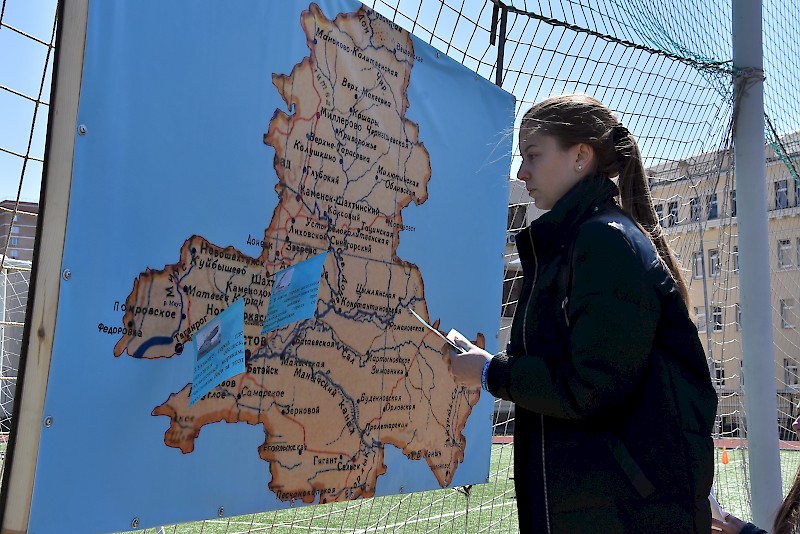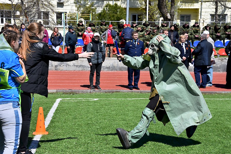 В первой половине дня мы находились на этапе под названием «Рубеж». Целью данного этапа было быстрее остальных учащихся надеть военное обмундирование и добежать до следующего участника эстафеты.
