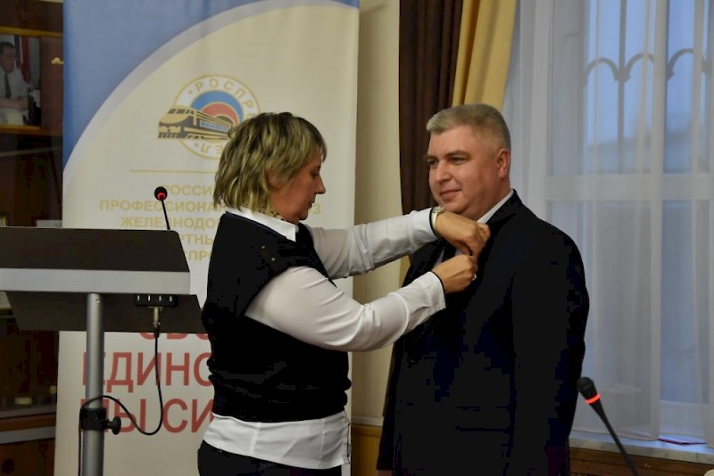 В РГУПС состоялась тематическая встреча «Юность комсомольская моя», в рамках которой заместитель председателя ДОРПРОФЖЕЛ на СКЖД Королева Маргарита Алексеевна вручила юбилейный нагрудный знак «25 лет Отраслевых тарифных соглашений», учрежденный Российским профессиональным союзом железнодорожника и транспортных строителей за личный вклад в развитие колдоговорных отношений Яицкову Ивану Анатольевичу - заместителю директора научно-исследовательской части, председателю первичной профсоюзной организации работников РГУПС.