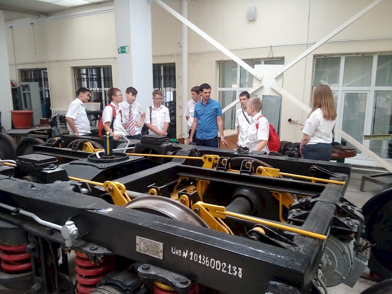 На электромеханическом факультете юных железнодорожников встречали и проводили занятия декан факультета И.А. Яицков, зав.каф. «Вагоны и вагонное хозяйство» О.А. Ворон, специалисты факультета. Обучающиеся опробовали свои силы в работе вагонов-тренажеров, посетили полигон кафедры «Вагоны и вагонное хозяйство», лабораторию «Техническая диагностика и неразрушающий контроль узлов и деталей вагонов». Юные железнодорожники смогли ознакомится с образцами современного оборудования, применяемого при эксплуатации ж.д. транспорта.