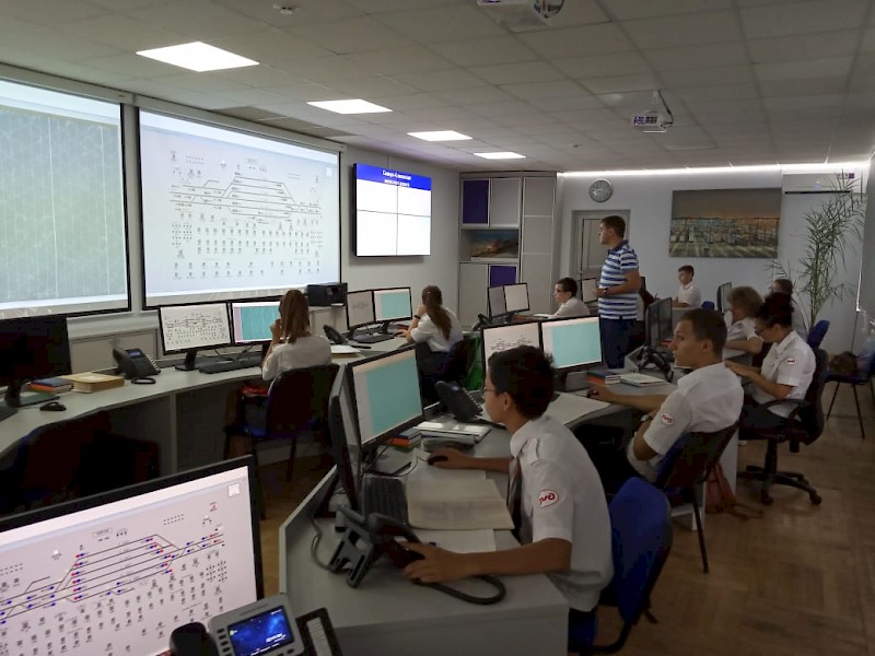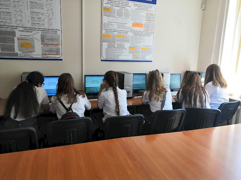 На факультете «Управление процессами перевозок» юные железнодорожники под руководством преподавателя кафедры «Управление эксплуатационной работой» М.В. Бакалова попробовали свои силы в диспетчерском зале лаборатории «Управление движением поездов». Ребята попрактиковались в работе дежурного по станции Хотунок, поработали на тренажерном комплексе «Прием и отправление поездов», посетили коворкинг «Центр IT-притяжения РГУПС».