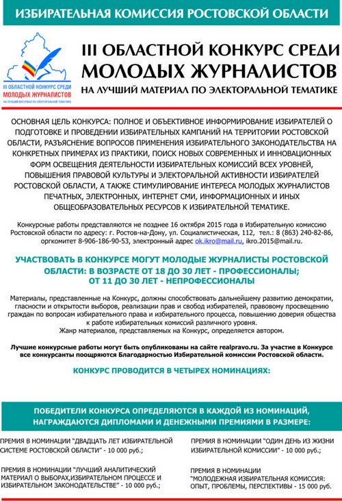 Избирательная комиссия Ростовской области проводит III областной конкурс среди молодых журналистов на лучший материал по электоральной тематике.