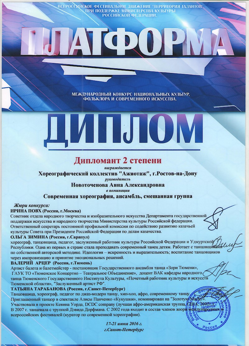 Хореографический коллектив "Ажиотаж" вернулся с Международного конкурса национальных культур , фольклора и современного искусства "Платформа", который проходил в г. Санкт-Петербурге. Поздравляем с наградами и желаем творческого вдохновения и побед !