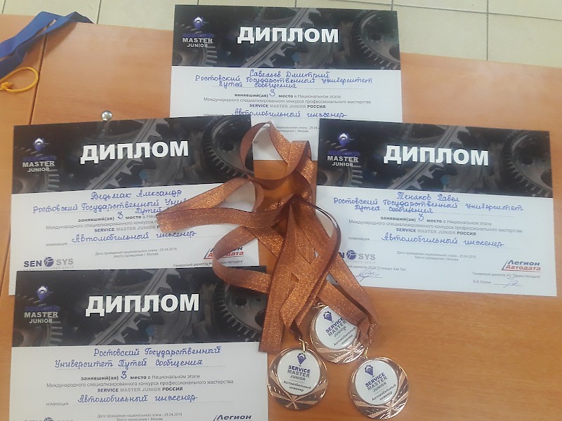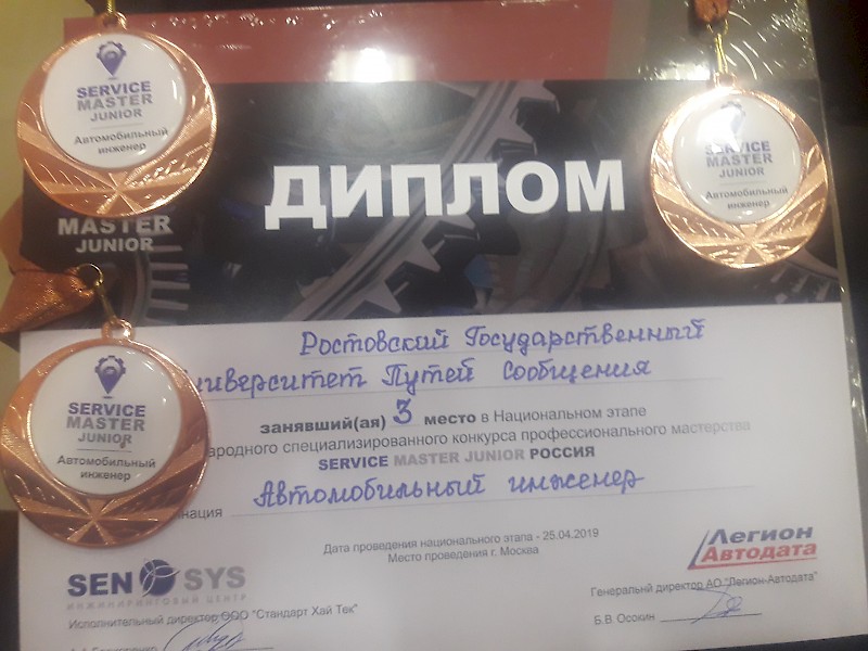 25 апреля 2019 г. команда студентов факультета «Дорожно-строительные машины» в составе А. Ведьмак, П. Пенякова и Д. Савельева под руководством доцента кафедры «Транспортные машины и триботехника» П.В. Харламова приняла участие в Национальном этапе конкурса «Service Master Junior (SMJ)» в номинации «Автомобильный инженер».