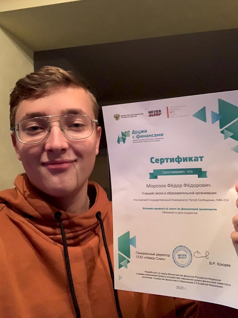 28 октября обучающиеся приняли онлайн-участие в первом этапе ‒ игре «Финквест». Юным финансистам нужно было разобраться, что такое семейный бюджет, из чего он формируется, как сохранить и преумножить сбережения, оптимизировать расходы, куда вложить деньги, чтобы их не потерять. Квест предполагал индивидуальное выполнение заданий каждым участником, и все студенты блестяще справились с этими задачами, получив соответствующие Сертификаты!