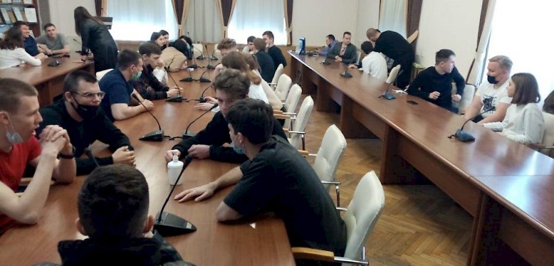 После интеллектуальной разминки в ходе интерактивной части встречи, участники были объединены в группы по 4-5 человек для выявления актуальных проблем, существующих, по их мнению, в университете, городе, регионе и стране, и поиска их решения. Обсуждая наилучшие пути решения различных проблем, ребята активно выступали и вели результативные дебаты.