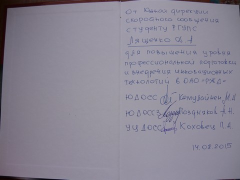 Многочисленные благодарственные письма руководителей предприятий и организаций, где трудились в ходе производственной практики студенты РГУПС в адрес руководства университета говорят об их добросовестном отношении к труду, организованности, высокой работоспособности, Это находило проявления как в ходе повседневного труда, так и период чрезвычайной ситуации 25-26 июня 2015года – при устранении повреждений устройств инфраструктурного комплекса объектов ОАО «РЖД».