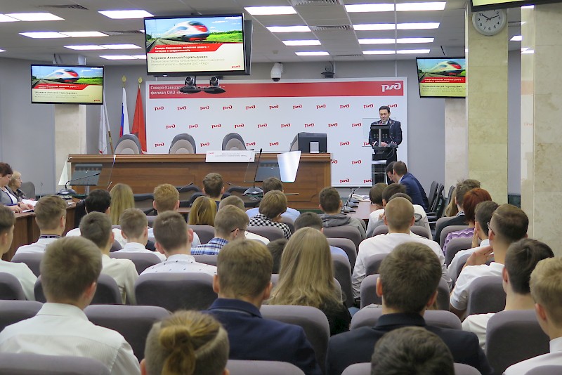 Учащихся 11 -х классов в этот день получили возможность познакомиться с работой железнодорожного транспорта на примере вокзального комплекса и хозяйства управления движением. Для них была организована экскурсия, в ходе которой ребята познакомились с работой Диспетчерского центра управления перевозками и основных служб. В конференц-зале ДЦУПа для лицеистов был проведён открытый урок. Первый заместитель начальника СКЖД – филиала ОАО «РЖД» А.Г. Черняев познакомил учащихся с историей и перспективами развития Северо-Кавказской железной дороги, ответил на вопросы лицеистов.