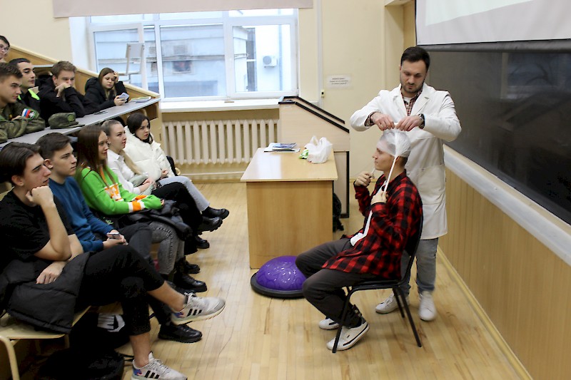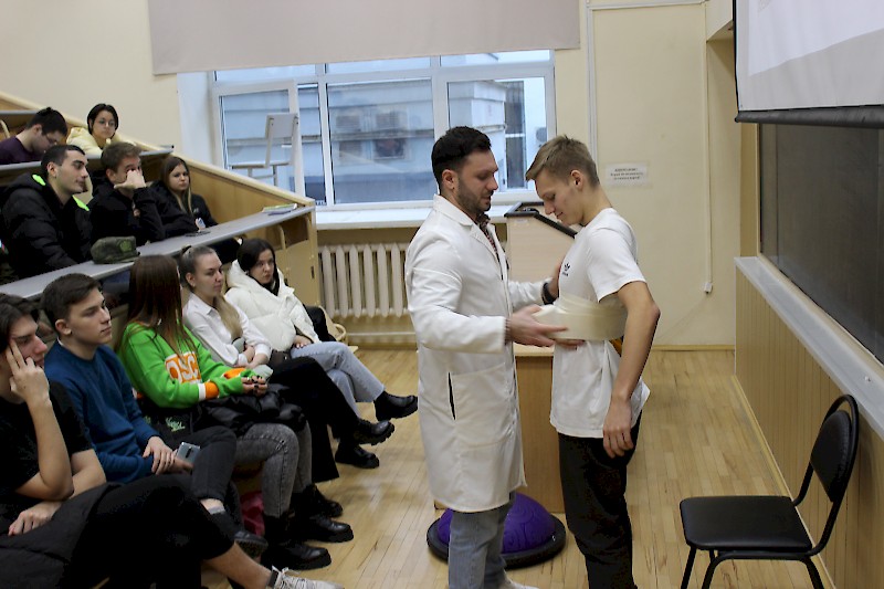 Мастер-класс на тему «Основы оказания первой помощи» был организован для студентов факультета «Экономика, управление и права» в целях знакомства с элементарными приемами оказания первой медицинской помощи. В качестве приглашенного эксперта выступил врач, практикующий хирург ЧУЗ КБ «РЖД-Медицина» г. Ростова-на-Дону, кандидат медицинских наук Межунц Арут Ваграмович.