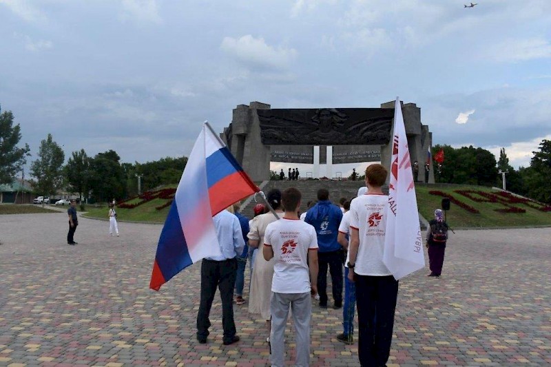 Далее участники автопробега продолжили свой путь в Административном центре Минераловодского района. В городе Минера́льные Во́ды состоялась памятная акция. Мемориал "Огонь Вечной славы" стал ключевой точкой двенадцатого дня международной акции. Церемония возложения цветов состоялась в 16.40 по московскому времени.
