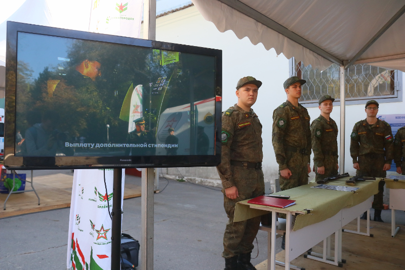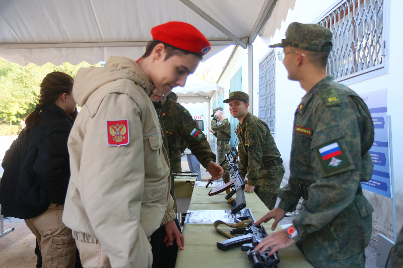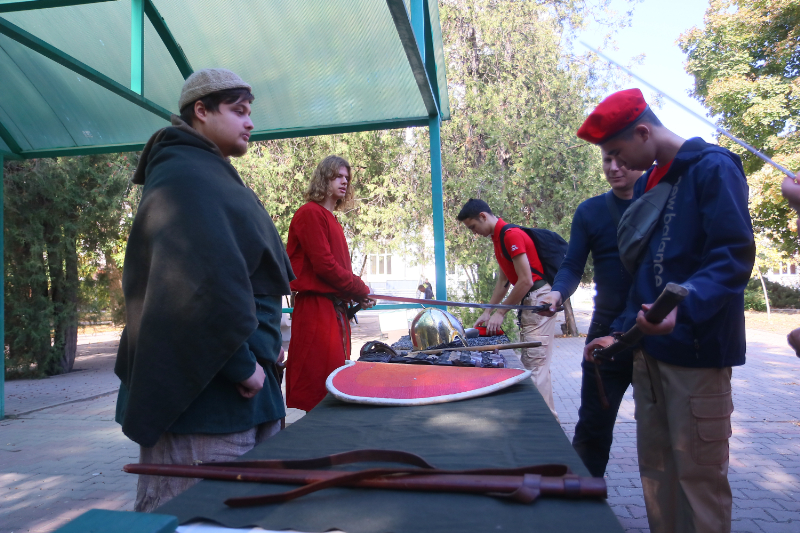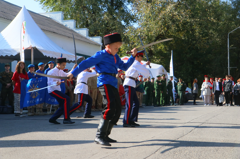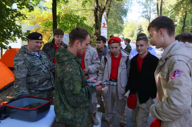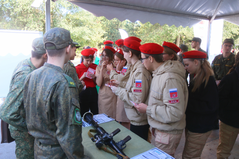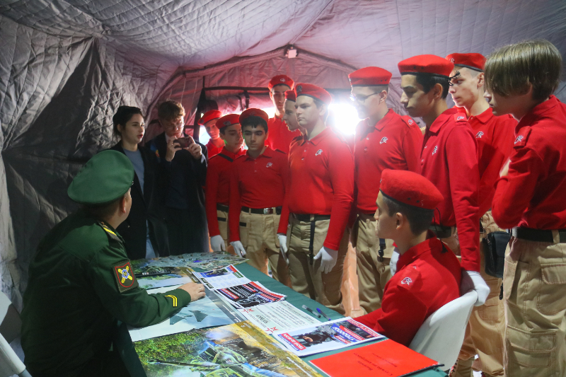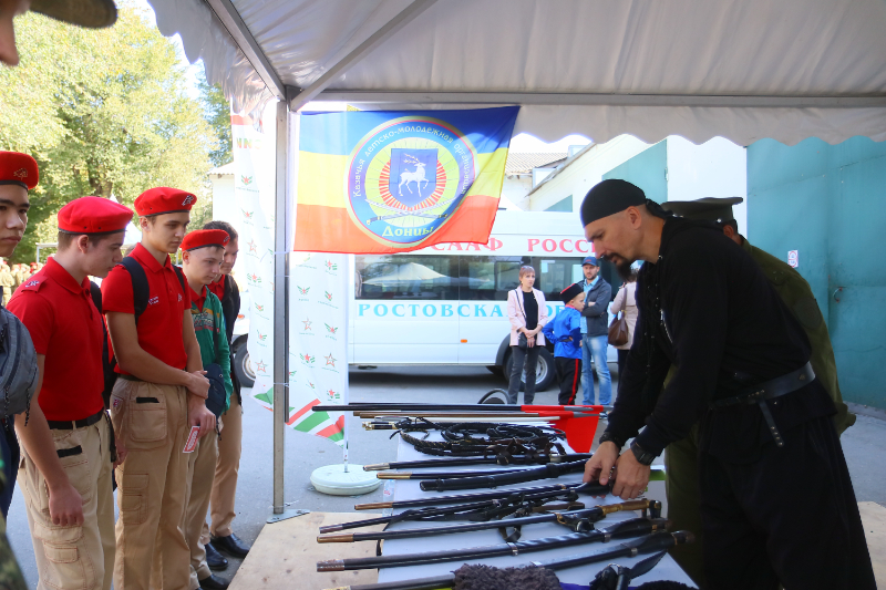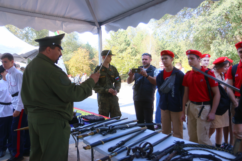 Ребята посетили тематические площадки, где были представлены вооружение и личные вещи военнослужащих, спасательные машины, симуляторы для отработки оказания первой помощи, БПЛА, образцы казачьего традиционного оружия, а также модели современного и раритетного стрелкового оружия.