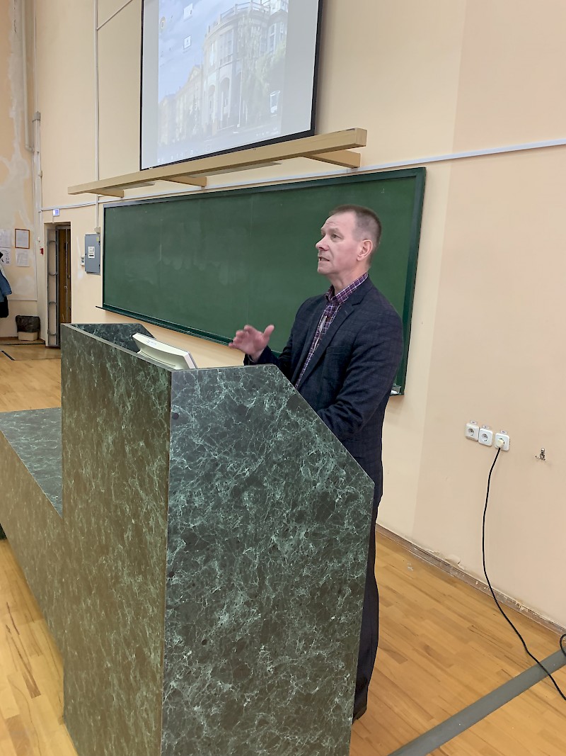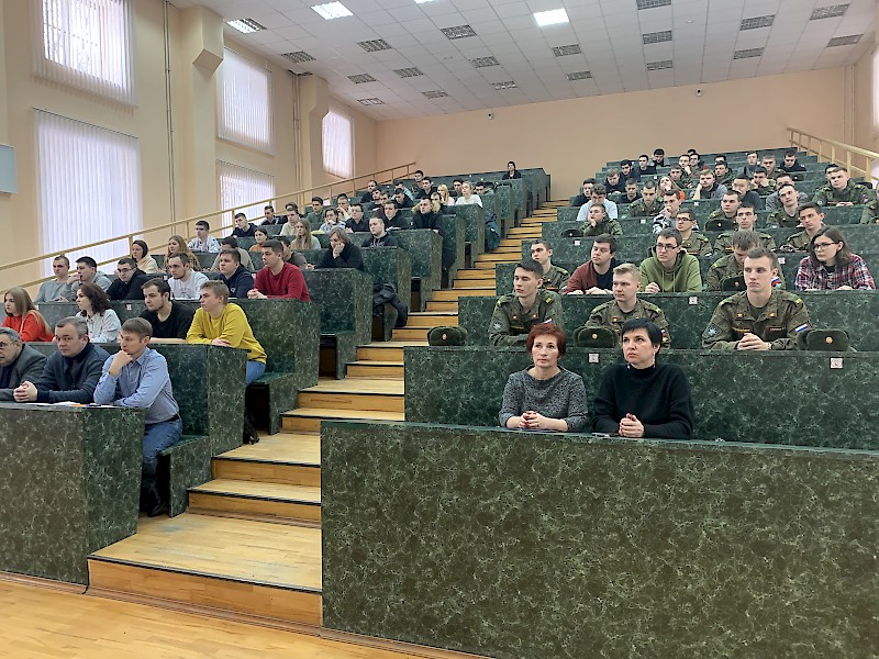 Далее Анатолий Алексеевич Солодкий и представители предприятия встретились с обучающимися 3 и 4 курсов Электромеханического факультета. Студентам был продемонстрирован информационный видеоролик о Мичуринском локомотиворемонтном заводе. В ходе общения с ребятами Анатолий Алексеевич ознакомил с направлениями деятельности предприятия, подразделениях завода и перспективах дальнейшего развития, ответил на вопросы, интересующие студентов, а также пригласил пройти летнюю производственную практику на оплачиваемых местах с перспективой дальнейшего трудоустройства и гарантией карьерного роста.