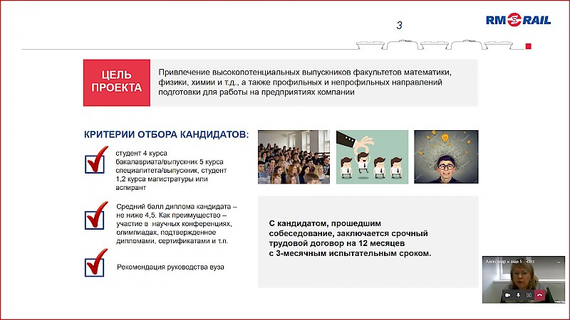 В ходе онлайн-встречи Надежда Константиновна ознакомила студентов с основными направлениями работы компании, вакансиях открытых для выпускников, перспективах трудоустройства и карьерного роста.