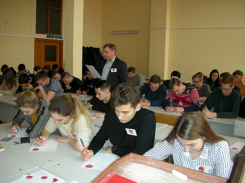 В число призеров акции, допустивших наименьшее число ошибок, вошли 10 человек: Соболева Ольга Юрьевна (ДЛС-2-014), Бахмутов Сергей Петрович (ЭПБ-1-207), Гусельников Юрий Александрович (ТДС-1-246), Галустов Вячеслав Дмитриевич (ГГБ-3-004), Булычев Денис Юрьевич (СУС-1-199), Давиденко Владимир Геннадьевич (ААС-1-202), Черкезян Андрей Павлович (ЭМБ-2-211), Лысак Алина Андреевна (ЭМБ-2-211), Шафоростов Владислав Владимирович (ДМС-3-243), Квасов Илья Владимирович (ДПС-1-036).