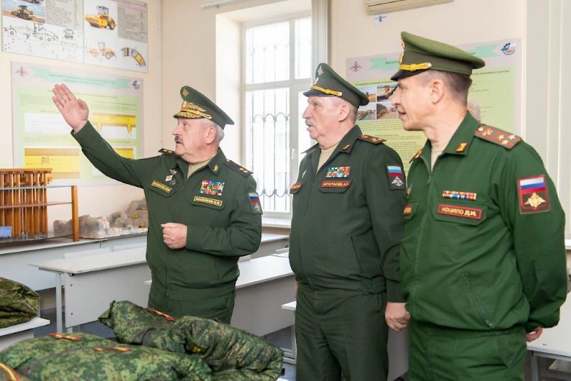 При посещении кафедры Железнодорожных войск начальник Главного управления ЖДВ ознакомился групповой работой студентов 3 курса, проходящих военную подготовку по программам офицеров запаса, изучающих применение роты механизации батальона механизации при возведении земляного полотна на обходе разрушенного моста и обратил внимание на перспективность и необходимость более глубокого изучения особенностей сооружения земляного полотна в районах вечной мерзлоты и других сложных условиях.