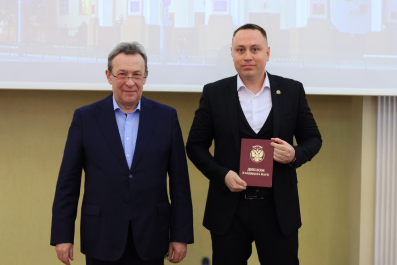 Диплом к.т.н. вручен БЕЗУСОВУ ДАНИЛУ СЕРГЕЕВИЧУ старшему преподавателю кафедры «Станции и грузовая работа».