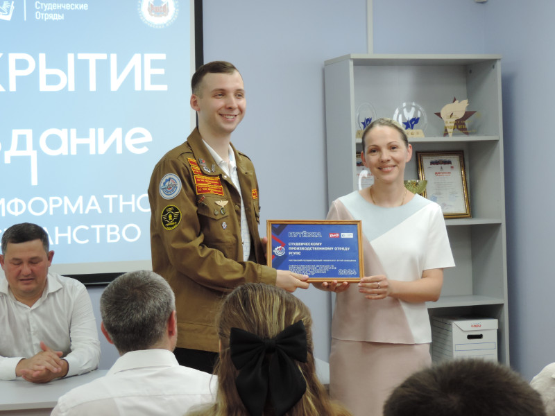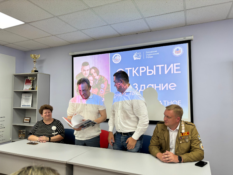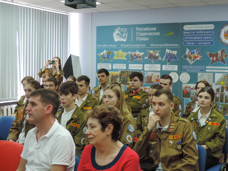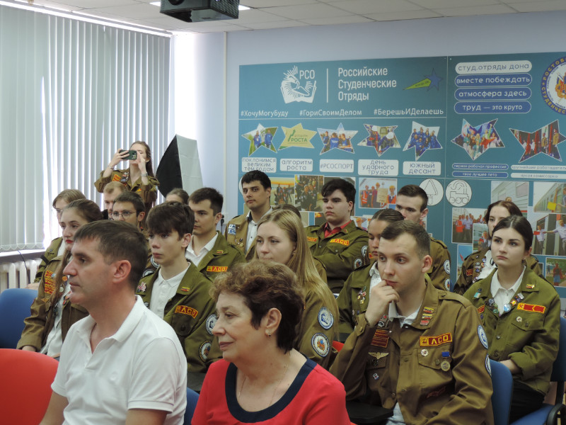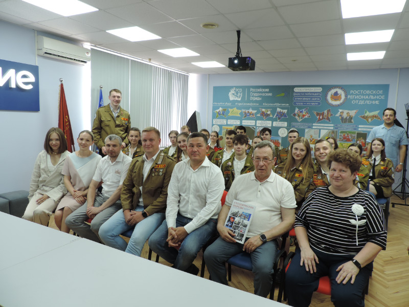 Руководители Ростовского регионального отделения МООО "РСО" - Д. В. Кротов и Р. А. Уколов - поблагодарили бойцов за высокую активность современного Штаба студенческих отрядов РГУПС в комиссарской и производственной работе регионального отделения, а также вручили администрации Университета книгу "Студенческие отряды Ростовской области: Люди, годы, эпоха...".
