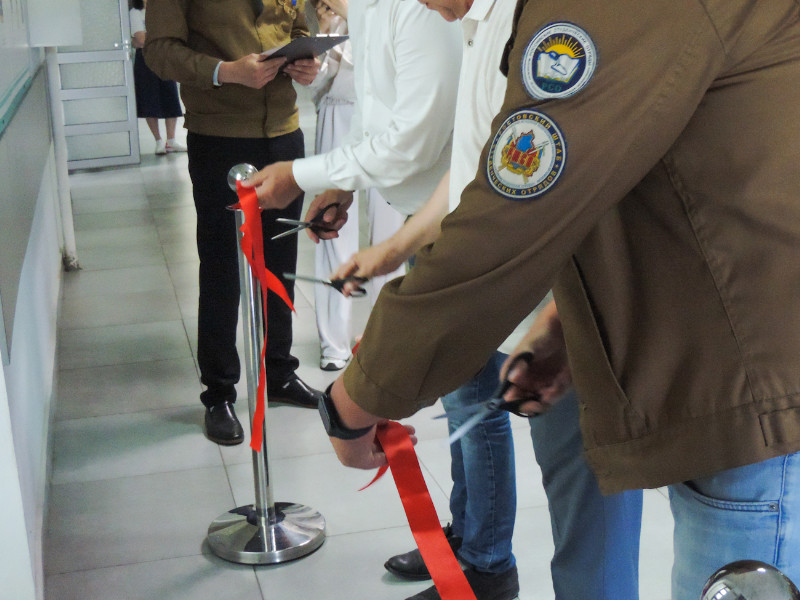 В рамках открытия мультиформатного пространства ленточку перерезали ректор РГУПС В. Д. Верескун и руководители Ростовского регионального отделения МООО "РСО" - председатель Правления Д. В. Кротов и командир Р. А. Уколов. А первой по доброй традиции в новое пространство зашла кошка - залог от всех невзгод.