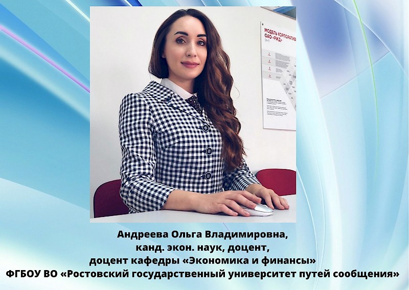 - 2 место: Андреева Ольга Владимировна, канд. экон. наук, доцент, доцент кафедры «Экономика и финансы»;