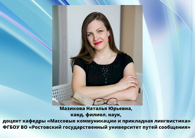 - 2 место: Мазикова Наталья Юрьевна, канд. филиол. наук, доцент кафедры «Массовые коммуникации и прикладная лингвистика».