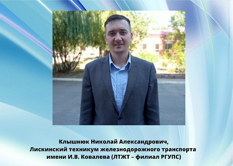 1 место: Клышнюк Николай Александрович, Лискинский техникум железнодорожного транспорта имени И.В. Ковалева (ЛТЖТ - филиал РГУПС);