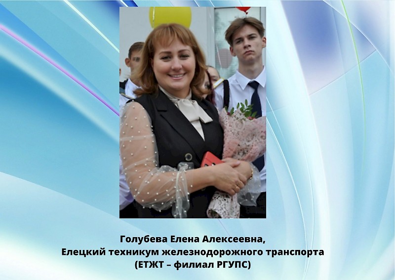 4 место: Голубева Елена Алексеевна, Елецкий техникум железнодорожного транспорта (ЕТЖТ- филиал РГУПС).