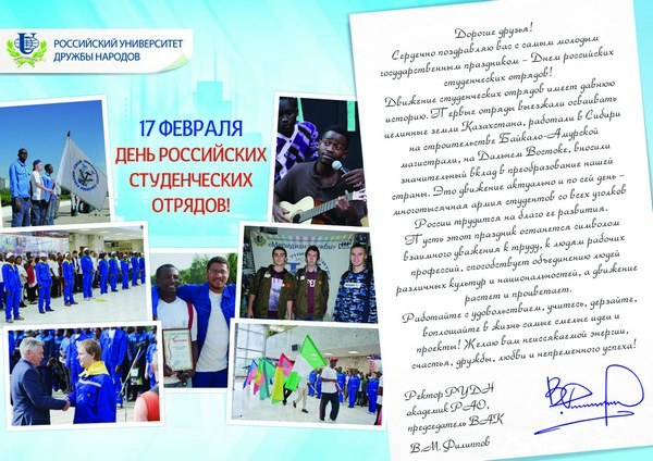 Поздравление с Днем российских студенческих отрядов ректора РУДН В.М. Филлипова.