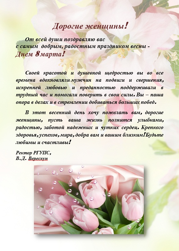 Поздравление ректора РГУПС В.Д. Верескуна с 8 марта