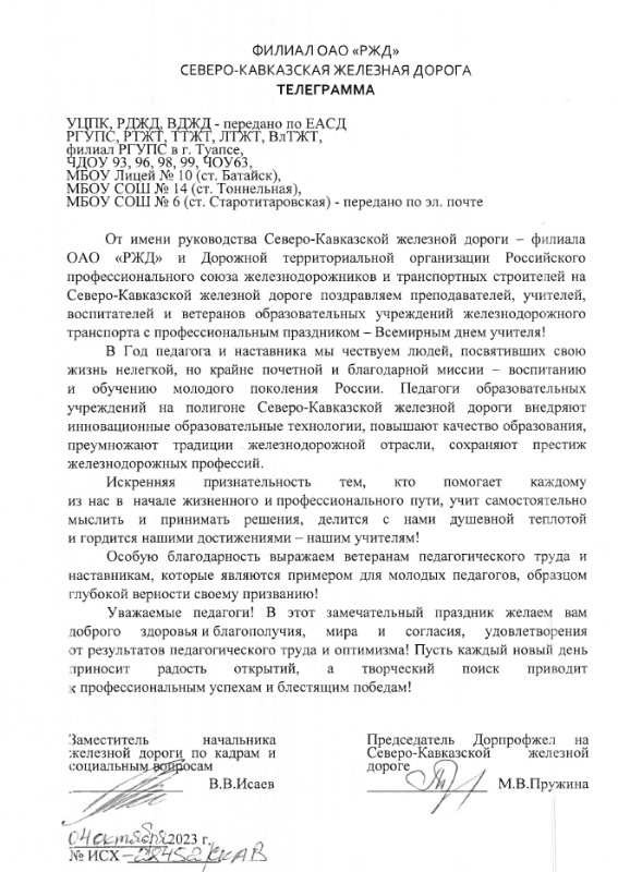 Поздравление с Днем учителя 2023 СКЖД