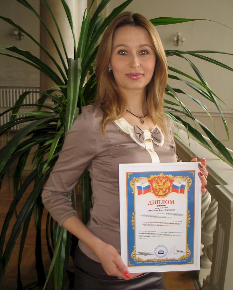 Поздравляем аспирантку Диану Хамбурову победительницу Международного конкурса, занявшую 3 место в номинации «Экономика организация и управление предприятиями, отраслями, комплексами», научный руководитель д.т.н.. профессор, заведующий кафедрой «Логистика и управление транспортными системами» Мамаев Э.А.